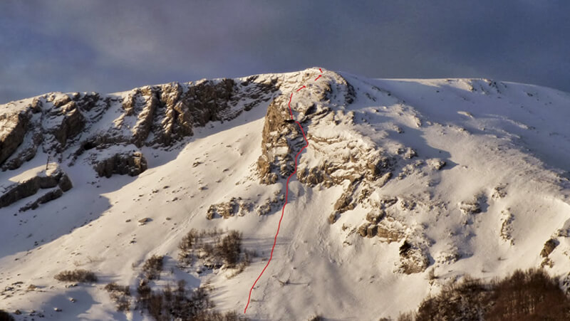 N.B. E’ vivamente consigliato affrontare questo itinerario ad inizio stagione e con condizioni di scarso innevamento, sia per far si che la via risulti più divertente (Il salto della parte inferiore, con tanta neve e a stagione inoltrata risulta coperto).