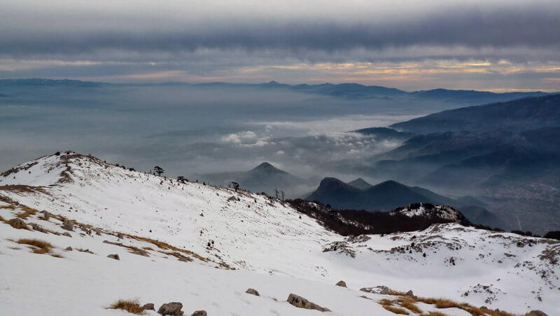 Una volta raggiunta la cresta sommitale, le difficoltà svaniscono e la vista si apre verso orizzonti vasti e luminosi. Il cammino finale verso la cima è dolce e panoramico, perfetto per assaporare il fascino severo e poetico del Pollino.