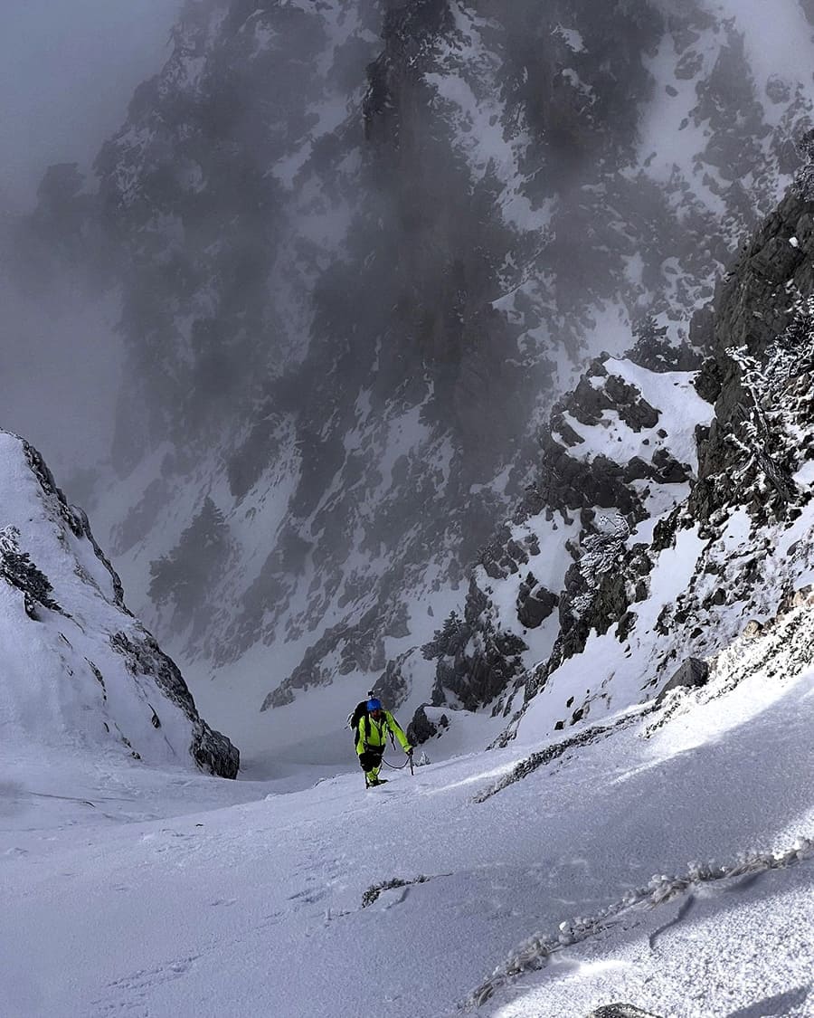 Nel versante sud del Serra Dolcedorme, i canaloni innevati offrono scenari spettacolari dove luce e pendii si intrecciano in un ambiente puro e isolato. Durante l’inverno questi canali sono accessibili solo con adeguata esperienza e l’uso di ramponi e piccozze, strumenti indispensabili per procedere in sicurezza tra neve dura e tratti ripidi.