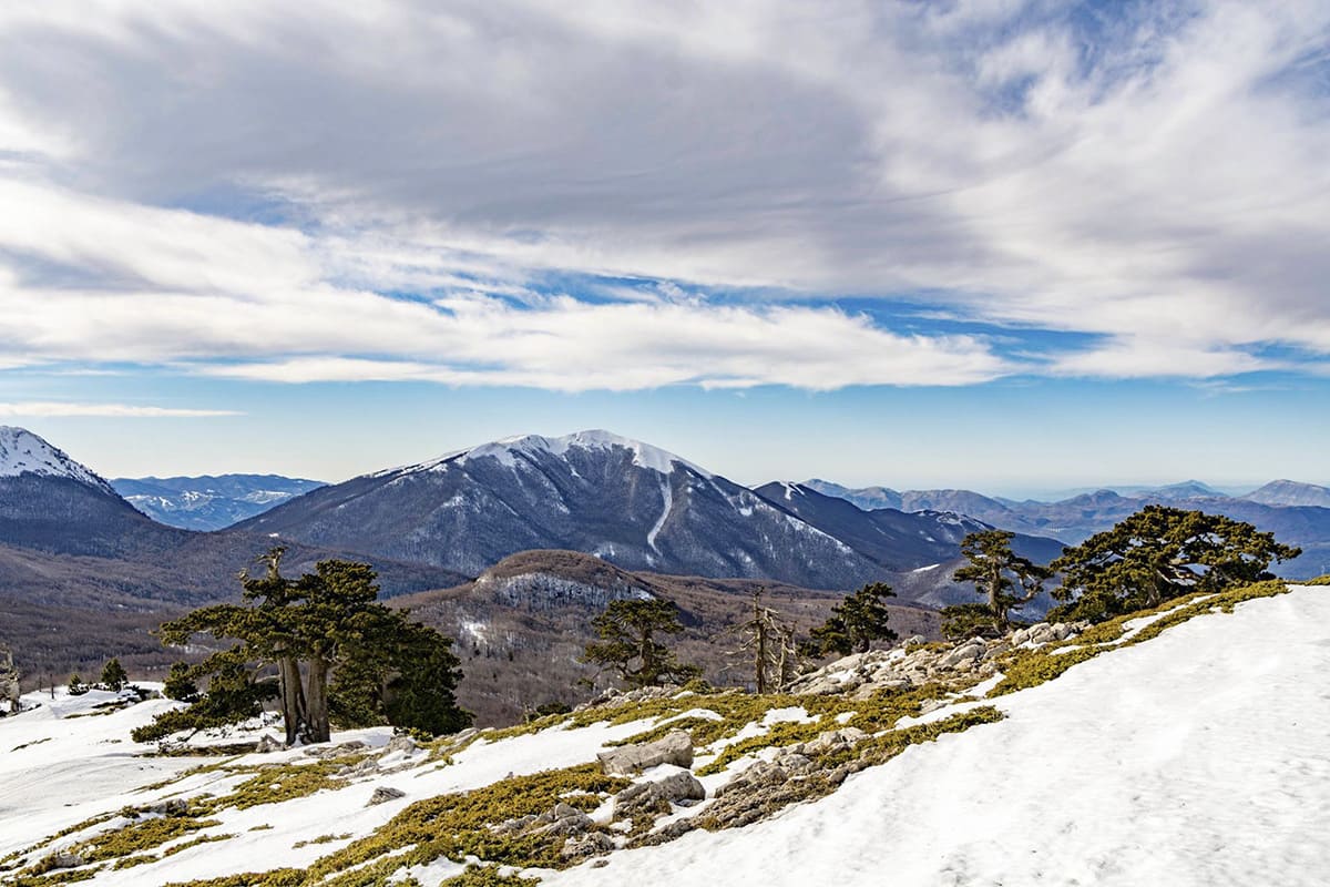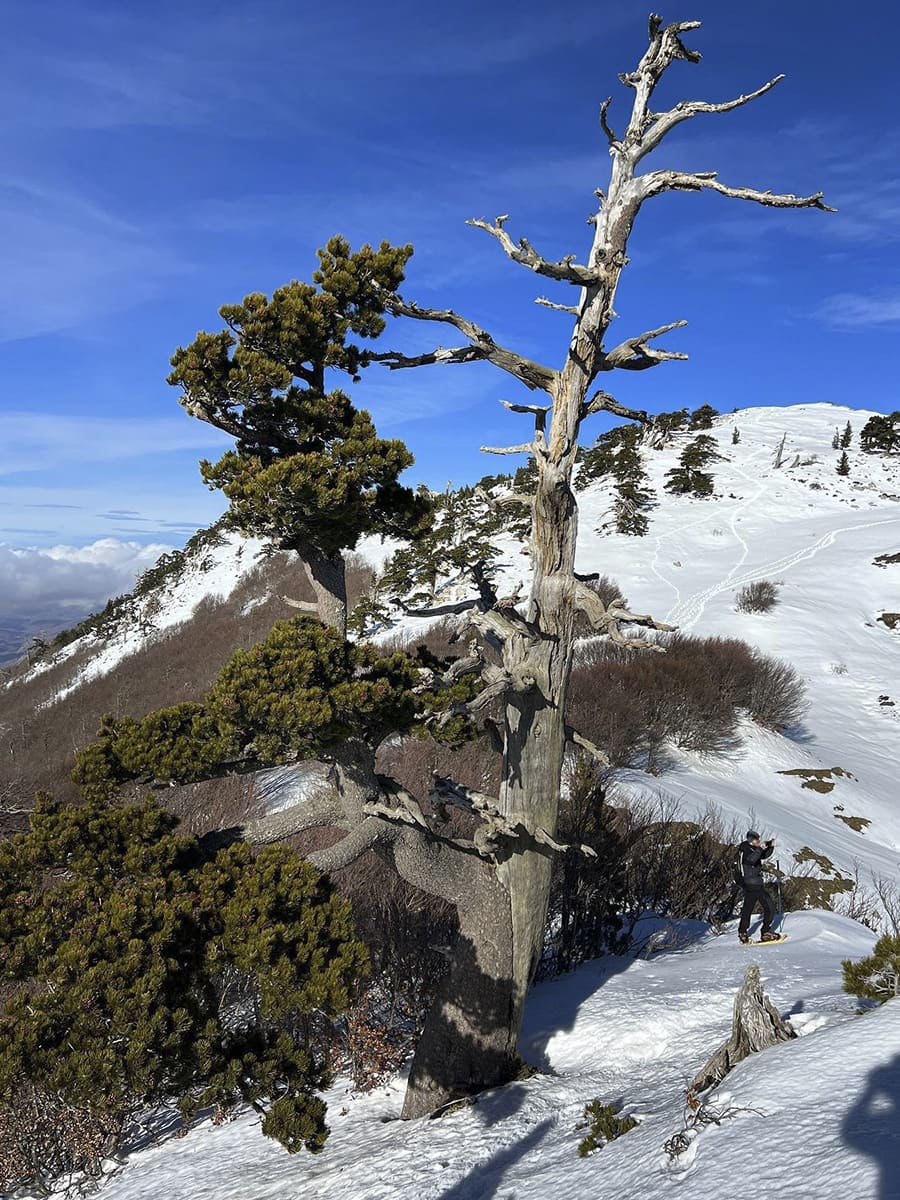 Porta del Pollino, la Serra di Crispo o il Monte Pollino, dove il vento scolpisce la neve e i pini loricati emergono come sculture naturali.