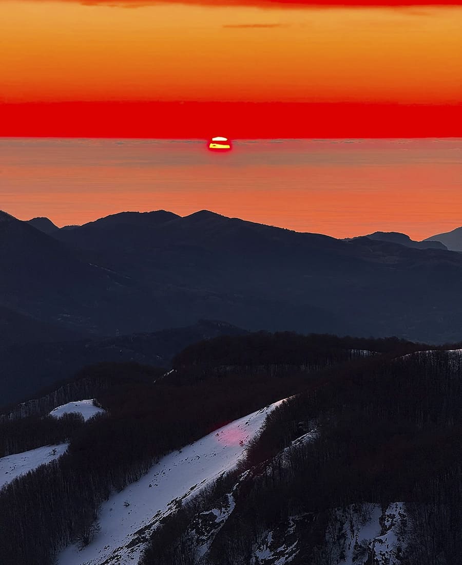 La Montea offrono percorsi solitari, crinali sospesi e vedute che spaziano dal Tirreno alle valli interne, perfetti per chi cerca un’avventura invernale autentica e lontana dai sentieri più