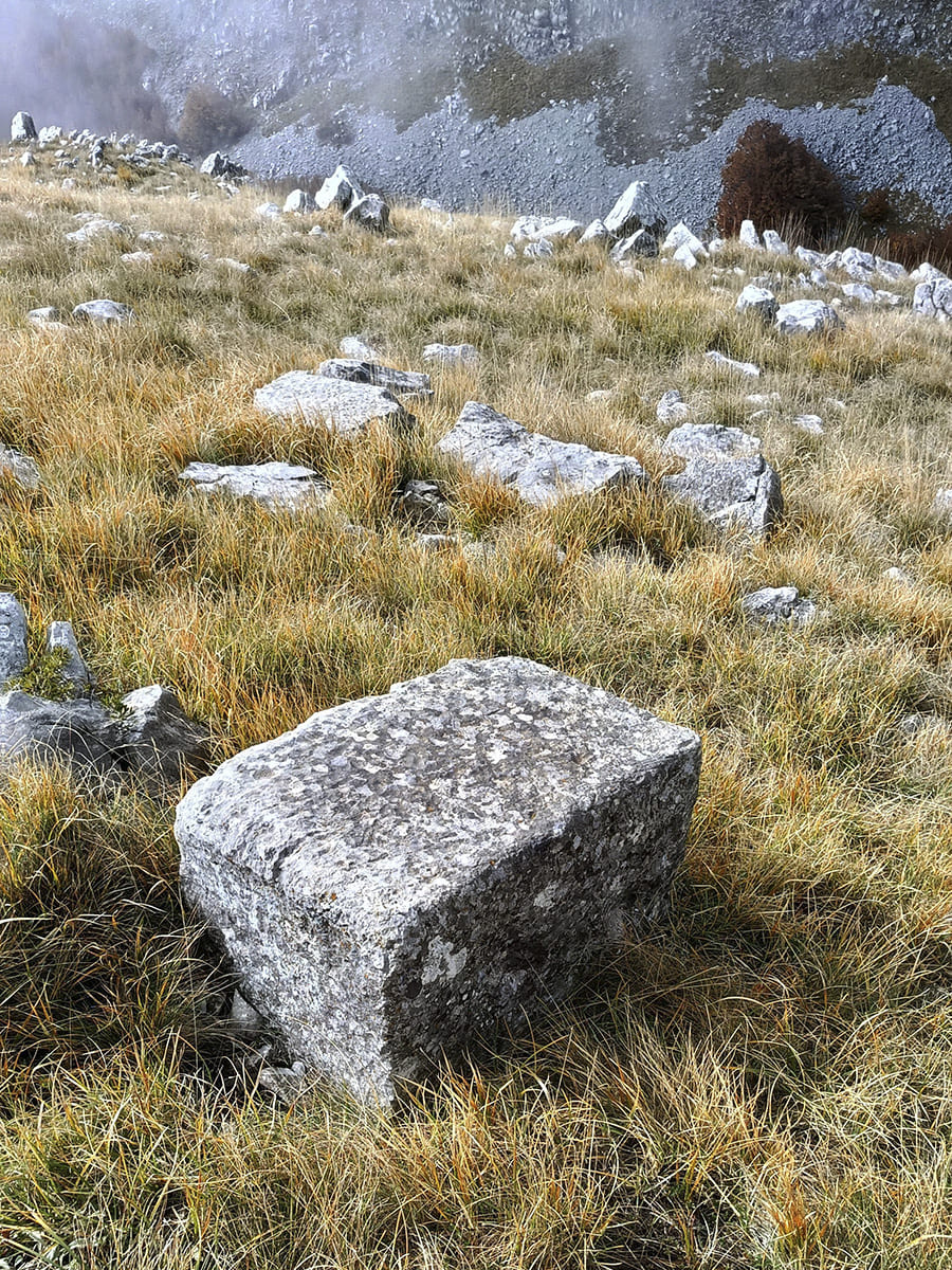 Questi manufatti – imponenti, regolari, e perfettamente squadrati – sembrano testimoniare la presenza di un'epoca lontana. Tra questi, un blocco in particolare si distingue per la sua forma e proporzione: un possibile architrave, che suggerisce una struttura architettonica di