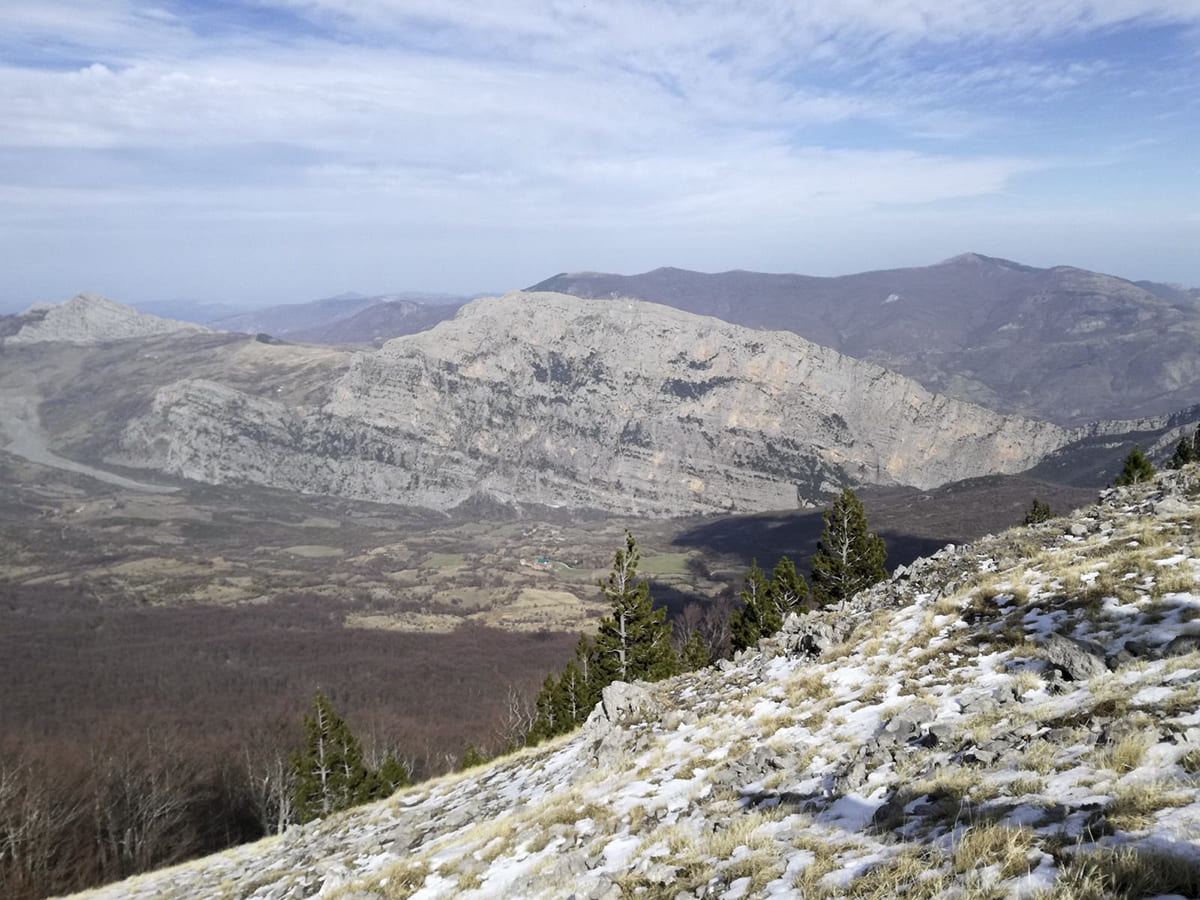 Il sentiero conduce verso la cresta, a quota 1700 m, nei pressi della Timpa del Principe. Il panorama è impareggiabile: a sinistra, la vista spazia dai Monti dell'Orsomarso al Parco Nazionale della Sila, abbracciando il Golfo di Sibari. A destra, si scorgono le vette più alte del massiccio del Pollino, le maestose Timpe rocciose e il profondo Bosco La Fagosa.