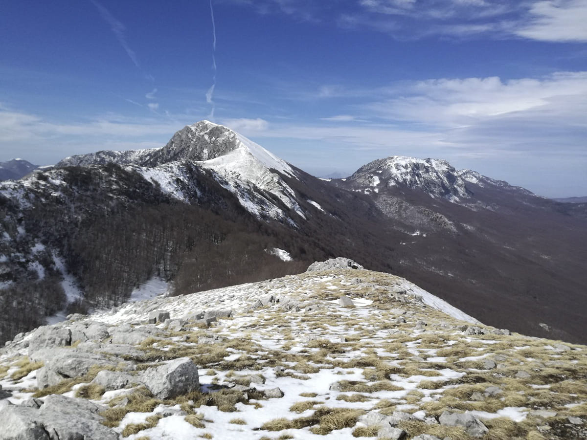 Proseguendo verso il Passo del Principe, si percorre una lunga cresta affilata che tocca le piccole vette della Serra di Malaverna. Lungo il cammino, i resti di vecchie teleferiche – cavi d'acciaio e pali ormai abbandonati – raccontano un passato di disboscamenti intensivi che un tempo interessavano il cuore del massiccio.