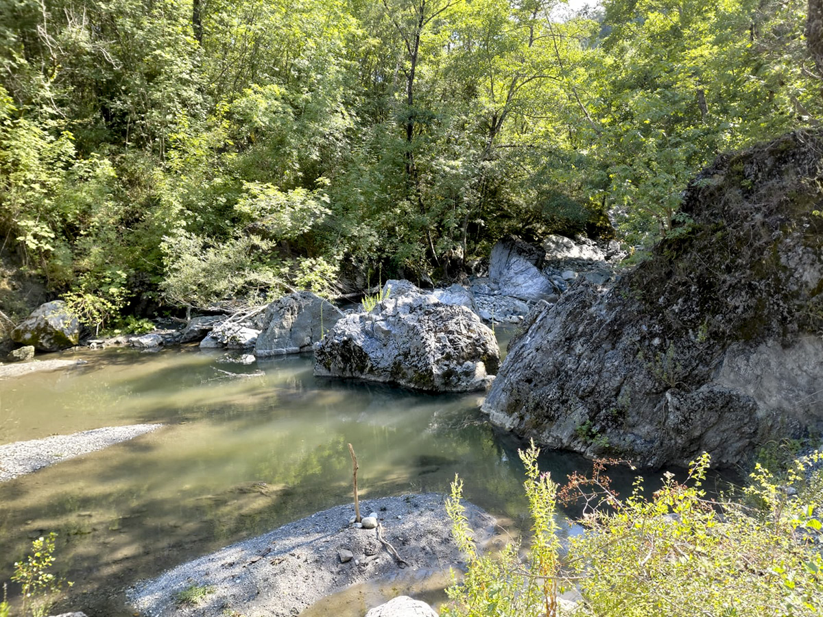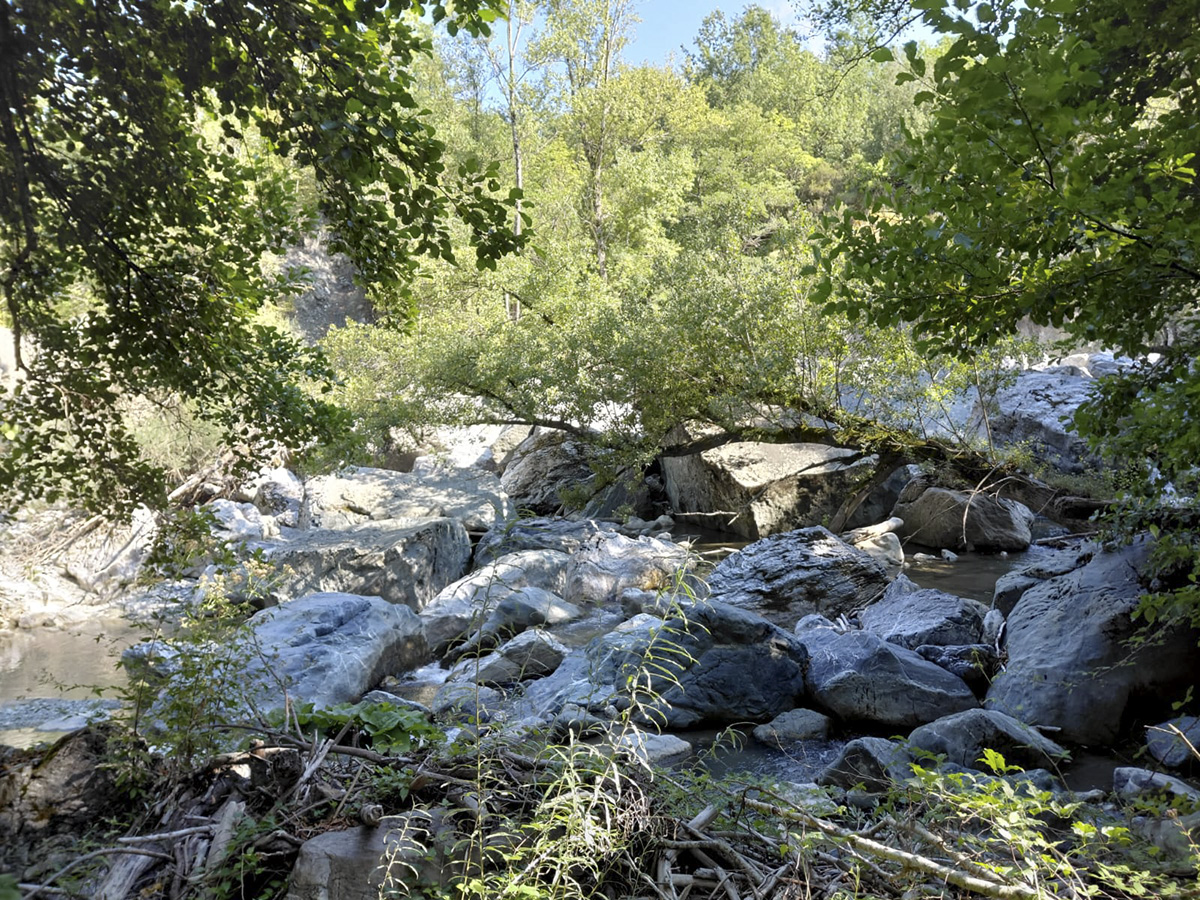 Lungo il sentiero si è circondati da un paesaggio di grande fascino, dove la forza della natura si manifesta in tutta la sua imponenza. Enormi massi modellati dal tempo e dall’acqua creano un’atmosfera quasi magica, mentre salti d’acqua cristallina riempiono l’aria con il suono melodioso dell’ambiente incontaminato. La vegetazione rigogliosa, con alberi e piante tipici dell’ecosistema fluviale, offre frescura e uno spettacolo di colori che cambia con le stagioni.