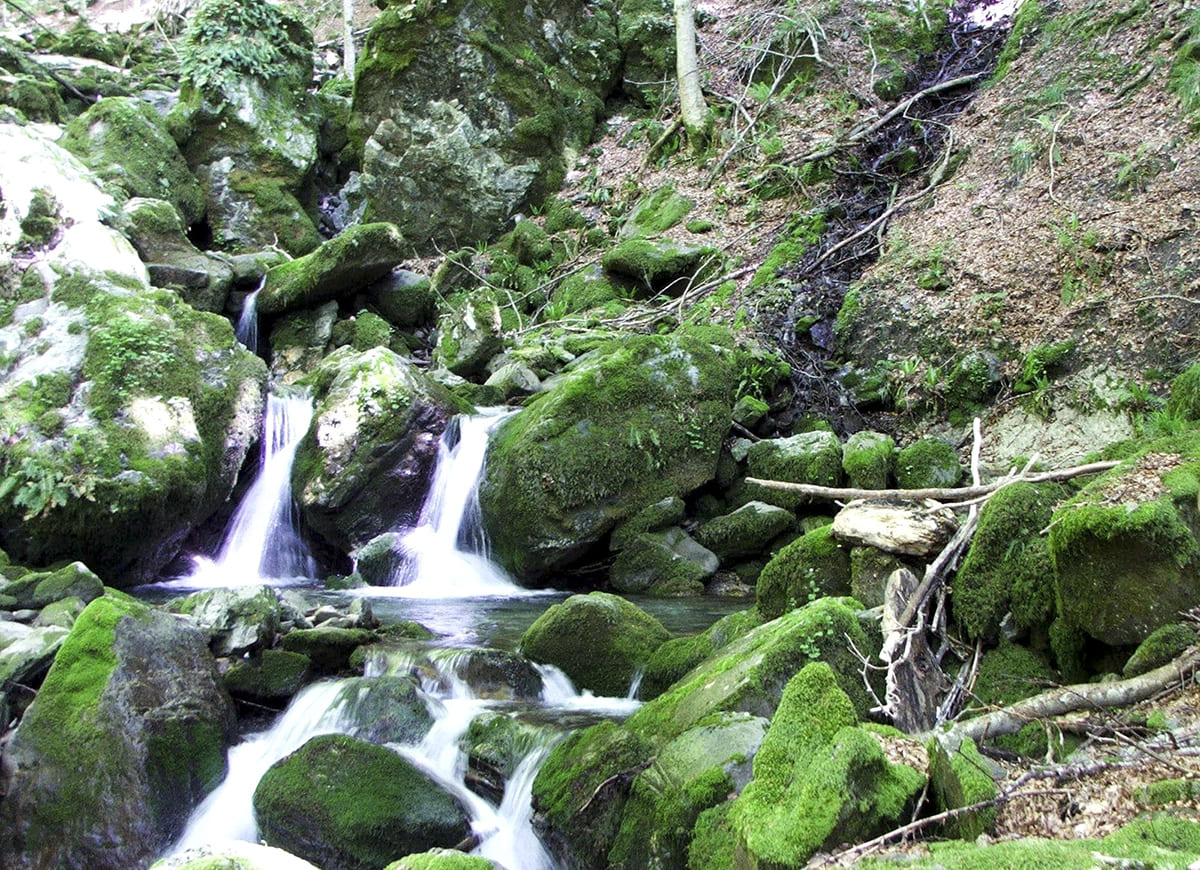 Il corso d’acqua si snoda tra rocce monumentali ricoperte di muschi e licheni, cascatelle cristalline, enormi felci e faggi colonnari che donano al luogo un’atmosfera quasi fiabesca. Non mancano i boschetti di ontano nero, tipici di questa zona montana.