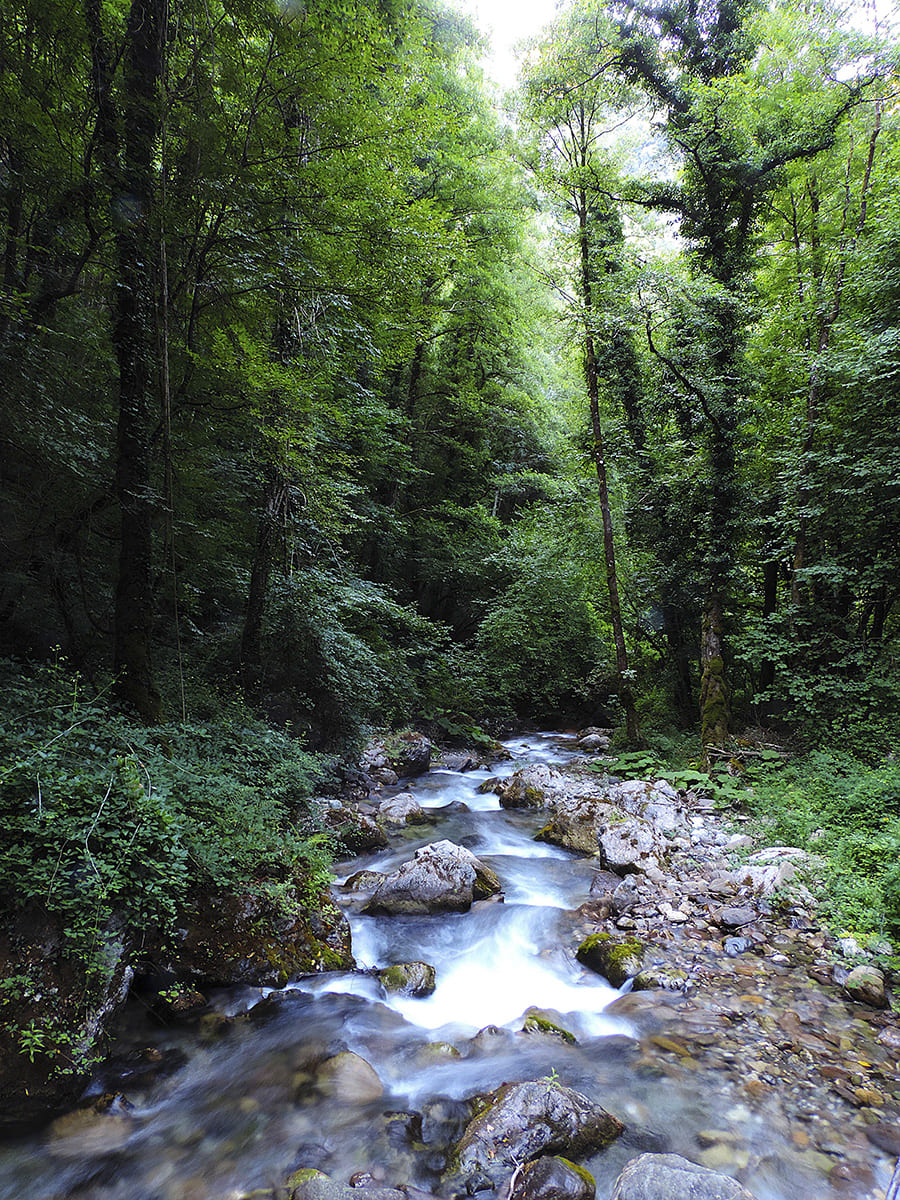 Di natura torrentizia, presenta una portata variabile che raggiunge il suo apice in primavera, grazie al disgelo delle nevi. Il fiume si snoda per circa 19 chilometri in direzione ovest, modellando profondi canyon e spettacolari gole, immerse in un paesaggio di rara bellezza e suggestione.