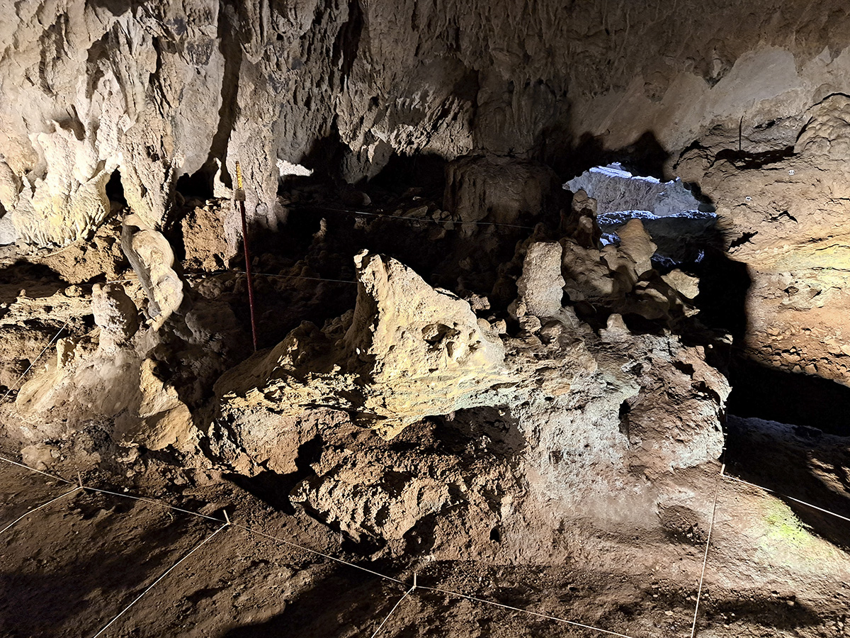 La grotta è stata abitata a lungo dall'Homo sapiens alla fine del Paleolitico, nel Mesolitico e nel Neolitico. A testimonianza di ciò il ritrovamento di strumenti litici e ossei, di resti dei propri scheletri e dal fantastico graffito del toro (Bos Primigenius) lungo circa un metro e venti centimetri.