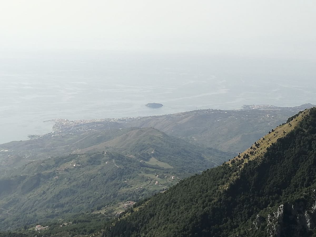 Dalla vetta del Monte Cannitello, la vista spazia su alcune delle cime più iconiche della Massiccio del Pellegrino, come La Montea, Monte Faghitello, Monte La Caccia e Monte Petricelle. La costa tirrenica si svela in tutta la sua bellezza, con i pittoreschi borghi di Belvedere, Diamante e l’isola di Cirel-la all’orizzonte. Il paesaggio è caratterizzato da pareti rocciose, giovani pini loricati e un’atmosfera di wilderness pura.