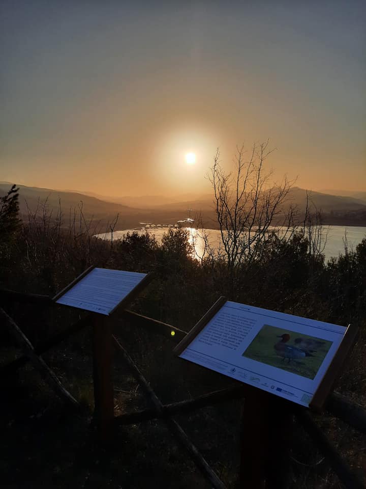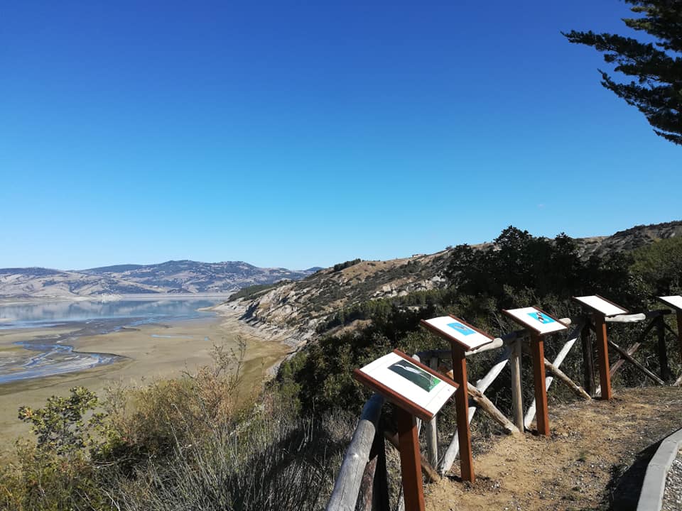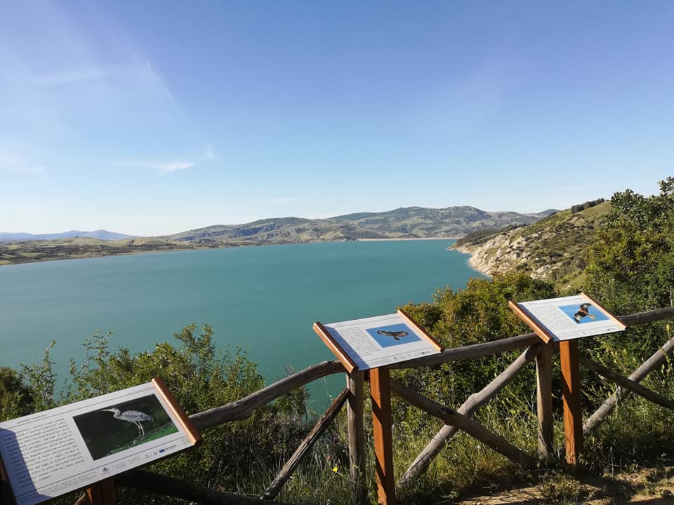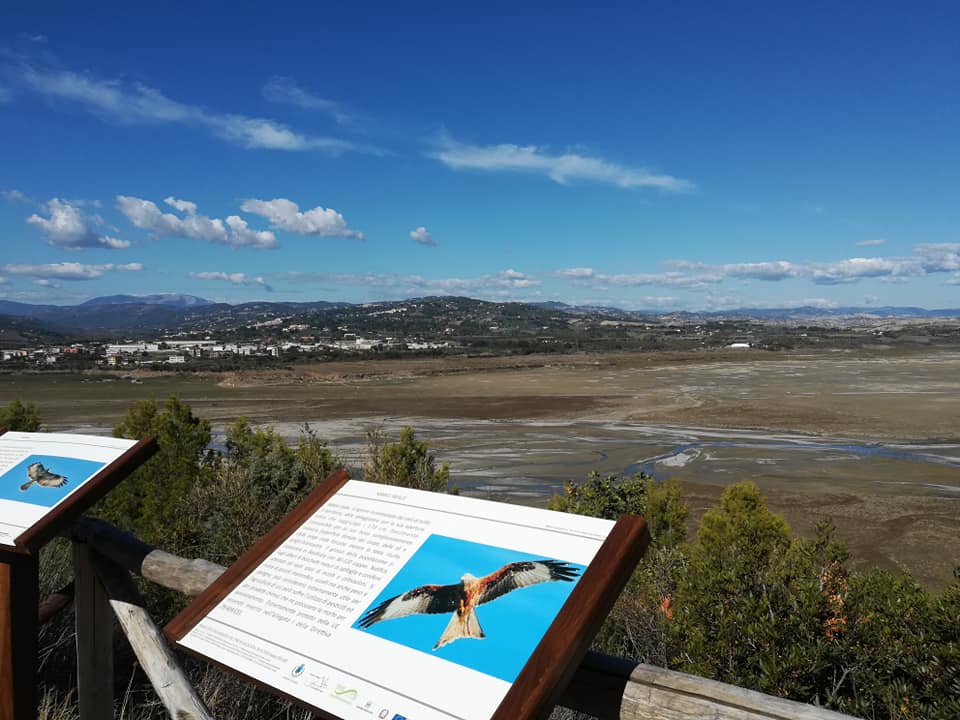 Qui si dà la possibilità di visionare tutto il territorio intorno al lago, caratterizzato da diversi ecosistemi che vanno da un ambiente semideserto alla folta vegetazione. Specie di uccelli acquatici e terrestri, stanziali e migratori tra cui il Nibbio reale, la Poiana, la Monachella, il Lanario, l’Occhione, la Sterpazzola di Sardegna, lo Storno qui hanno trovato un habitat ideale.