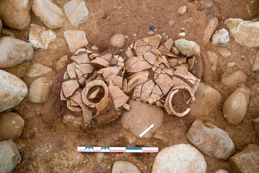Situata sul pianoro di Macchiabate, ad Est dell’abitato e separata da esso dal torrente Dardania, la necropoli si estende per oltre un chilometro. Gli scavi condotti da Paola Zancani Montuoro hanno riportato alla luce tombe a tumulo di forma circolare o ellittica, realizzate con ciottoli e massi accuratamente selezionati. Il rito funerario prevedeva la deposizione del defunto in posizione rannicchiata, accompagnato da corredi ceramici e oggetti in bronzo, simbolo del suo status sociale.